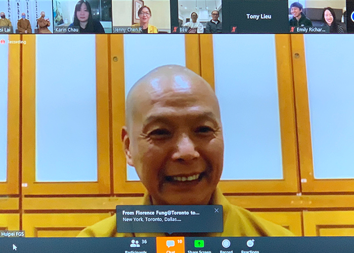 BLIA Radiance Chapter held online reading club for the second time on April 18. Young adults from BLIA Radiance Chapter in Los Angeles, Vancouver, New York, Toronto, Dallas, Edmonton and Sydney attended this event. The reading club also had the honor to have BLIA YAD Executive Director Venerable Hui Chuan, Hsi Lai Temple Abbot Venerable Hui Dong and Toronto Fo Guang Shan Abbess Venerable Jue Fan. In total, 50 participants attended the online reading club.