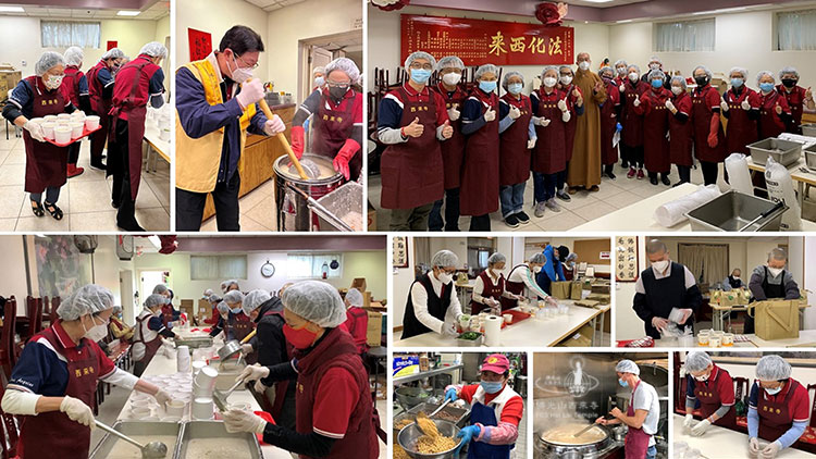 Besides members, the Abbot of Hsi Lai Temple, Venerable Hui Dong, wanted all visitors who came to the temple—after making online reservations— to receive a bowl of porridge and share in the joyful celebration of Buddha’s enlightenment. Many helped prepare and distribute the porridge: from venerables, Alex Wu, president of the BLIA Los Angeles Chapter, Yuqin Ke, director of the Elder Advisor Committee, BLIA members, to volunteers—everyone pitched in making this meaningful event successful!