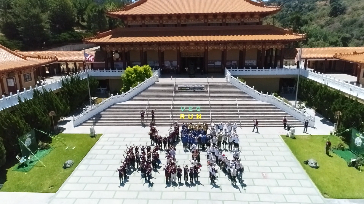 A thousand miles begins with a single step—The 2022 Global VEGRUN program, co-organized by the Buddha's Light International Association (BLIA) and iPure Green Foundation, is a marathon happening on five continents around the world between April 28, 2022 to May 16, 2023. VEGRUN is the abbreviation of vegan run and vegetarian run, which means running to promote vegetarianism and running for the earth. Vege-Revival represents awakening to restore vitality. All kilometers accumulated from walking or jogging are converted into vegetarianism promotion, tree-planting, and supporting various charities—making each step very meaningful. On June 18th, North America took the baton from South America—the first handoff—and held an opening ceremony. BLIA Los Angeles Chapter (BLIA LA) designed three profound routes around Hsi Lai Temple. A total of 338 people participated and accomplished a total of 1226 kilometers (762 miles) together.