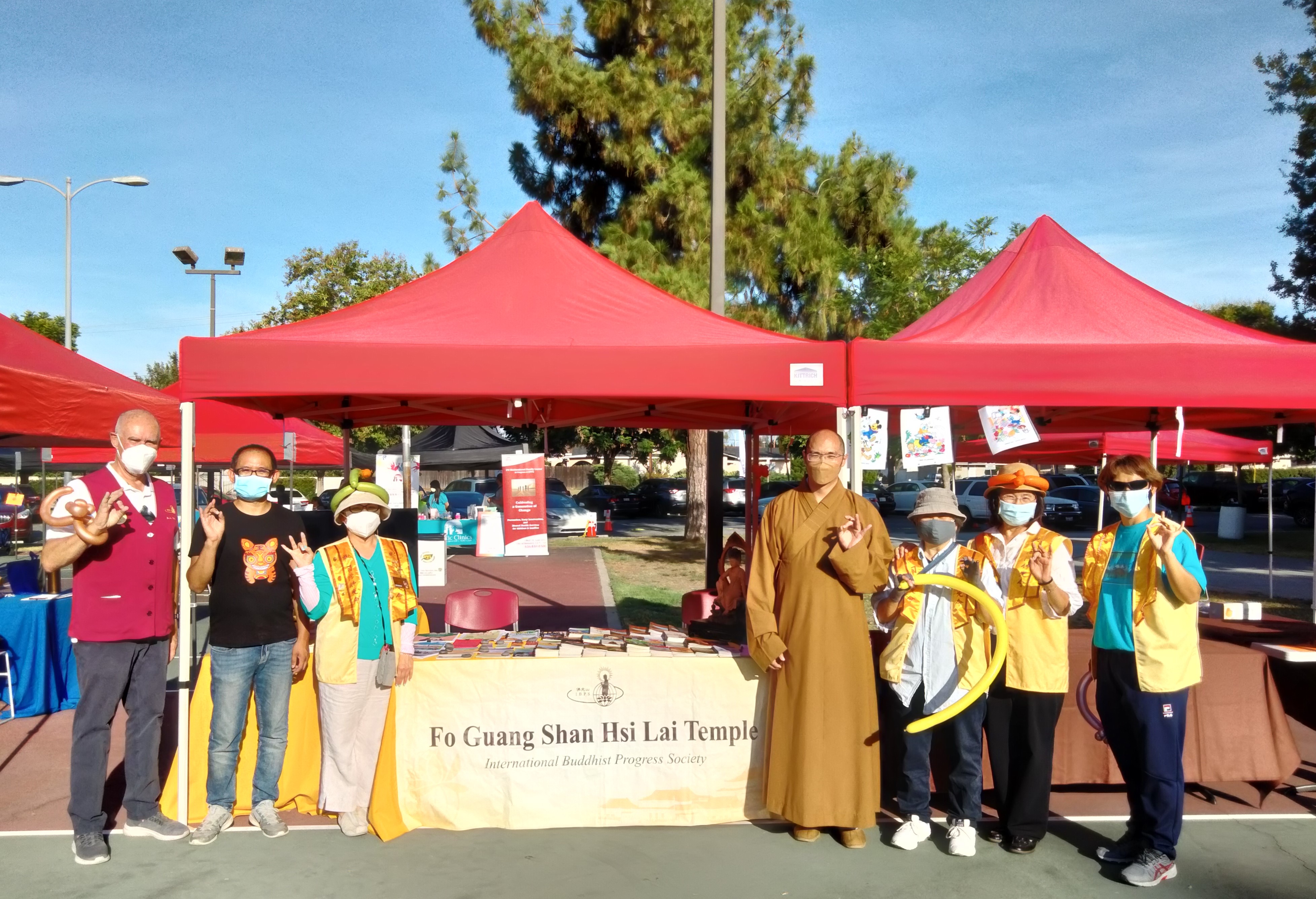 Ven. Hui Cheng of Hsi Lai Temple led volunteers from the BLIA (Buddha’s Light International Association) Hacienda Heights Subchapter and the Hsi Lai Temple Docent Unit to greet the public warmly by providing sachet making, painting, series of Buddhist booklets, sanitizers, etc., and introducing various activities held at Hsi Lai Temple. A door – understanding of Buddhism – was opened to the public.