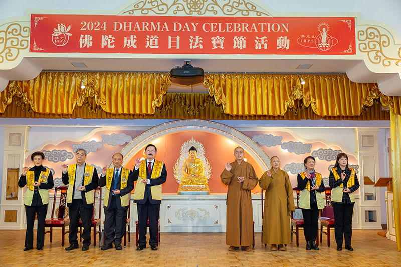 The Los Angeles chapter of the International Buddha's Light Association (BLIA) organizes a series of activities every year during the Dharma Day celebration. These include Buddhist exams, Laba porridge offerings, and presentations of insights from reading and studying experiences to celebrate Buddha's Enlightenment. After a three-year hiatus due to the COVID-19 pandemic, an experience-sharing event was held on January 20, 2024, at Hsi Lai Temple, where nearly 200 BLIA members gathered to joyfully celebrate Dharma Day. Ven. Hui Dong, the Abbot of Hsi Lai Temple, Ven. Yi Chao, the director of the FGSITC, and BLIA Lay Dharma lecturers Jim C. Chen, Lunjie Chen, Min Li, and Huiyun Xu served as judges. Ven. Yi Shan, the superintendent of Hsi Lai Temple, and Elder advisor director Linfeng Zhao also attended.