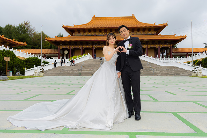 The groom, Vincent Liu, grew up at Hsi Lai Temple and has been involved with BLIA-YAD since childhood. His late parents were also Fo Guang Shan devotees, with his father Brian Wu having served as the Secretary-General of the BLIA Los Angeles Chapter. His stepmother, Helena Huang, is a dedicated volunteer at Hsi Lai Temple. His brother Jonathan was also a previous BLIA-YAD president.