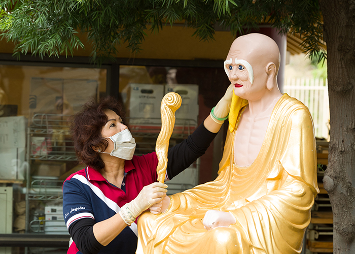 佛光會各分會認領各項工作,展現佛光人勇於承擔,不落人後的精神。大家攜帶各項打掃工具與清潔用品將五聖殿、十八羅漢、觀音池,客廳教室、大雄寶殿、法堂、會堂、懷恩堂、禪堂、五觀堂、中文學校等各處清潔乾淨。 住持也親自帶領法師們一同出普坡,讓佛光人感受僧俗二眾不分您我的為環境清潔而努力。大家在付出勞動的同時,更獲得內心的喜悅。在勞動中,更具體的體證星雲大師所倡導「三好」、「四給」精神。(攝影:西來寺提供)