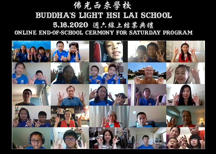 【人間社記者周芝含洛杉磯報導】佛光西來學校特於5月16日下午舉辦2019-2020週六線上結業典禮,此次由於居家防疫,西來學校首創線上結業典禮,並採報名制,共計85個帳戶,112名師生報名。精彩感人的節目,獲得家長及老師們一致好評。