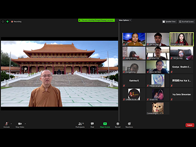 會議結束前,知晴法師分享波斯匿王問佛陀何謂自愛的故事,期勉同學更加愛護自己,如佛陀所教導的,身口意三業行善者,都是自愛的人。會後,主持人黃冬妮分享,第一次擔任英文司儀,頗有挑戰性,本來抗拒想放棄,但卻因承諾而推動自己往前。經過多次的修改、練習,體悟很多事情其實是自己選擇不去做,而變成不會做;只要認真對待事情,因果不會辜負我們。(攝影:西來大學三好學社)