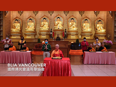 今年法會文疏回向所有北美僧信二眾及受新冠肺炎疫情影響的大衆及醫護人員。佛光山西來寺並於下午在線上舉行三時繫念法會,回向信徒檀那,感謝大家的護持。(照片:西來寺提供)