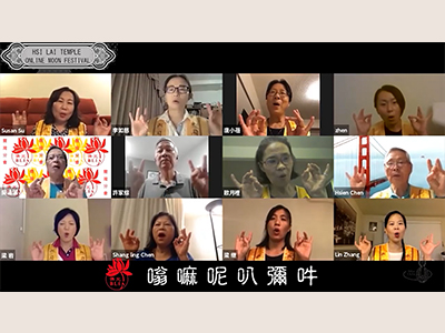 疫情的蔓延雖然阻隔了信徒大眾回寺的路,但是,拜科技網路之賜,在西來寺法師的帶領,半年來,除了各項法會如法如儀進行,常住更特別在中秋夜舉辦別開生面的線上中秋晚會,透過鏡頭,領受來自總本山心保和尚、慈容法師、慧傳法師、依空法師等長老跨越時空的祝福,體會「疫情無情,人間有愛」。