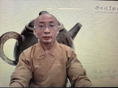 西來寺慧軒法師介紹今年剛推出的西來佛光緣美術館線上展覽,藝術家尤尉州「歡喜羅漢茶禪一味藝術展」。法師告訴大家從認識藝術家的內心去欣賞其創作,進而發現作者內心的世界,並由此產生共鳴。法師説尤尉州歡喜與人分享的性格處處展現在作品上,欣賞他的作品可以感受藝術家內心的清淨,進而使人得到內心的歡喜。