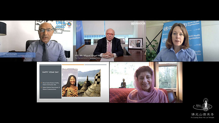 此線上典禮以YouTube直播方式進行,受邀的貴賓有聯合國文明同盟會高級代表Miguel Moratinos、美國佛光山西來寺住持慧東法師、美國佛教會(BAUS)菩提法師、慈濟基金會德淵法師、修持協會(The Bhavana Society) Ven. Saddhajeewa等出席典禮。