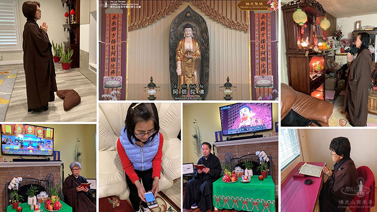 彌陀佛七主要以稱念阿彌陀佛聖號為主,念佛是淨土法門最重要、也最普遍的修持法門之一。因洛杉磯新冠疫情仍然嚴重,全程法會皆於線上舉行。每支香別皆有500人左右精進念佛修持。