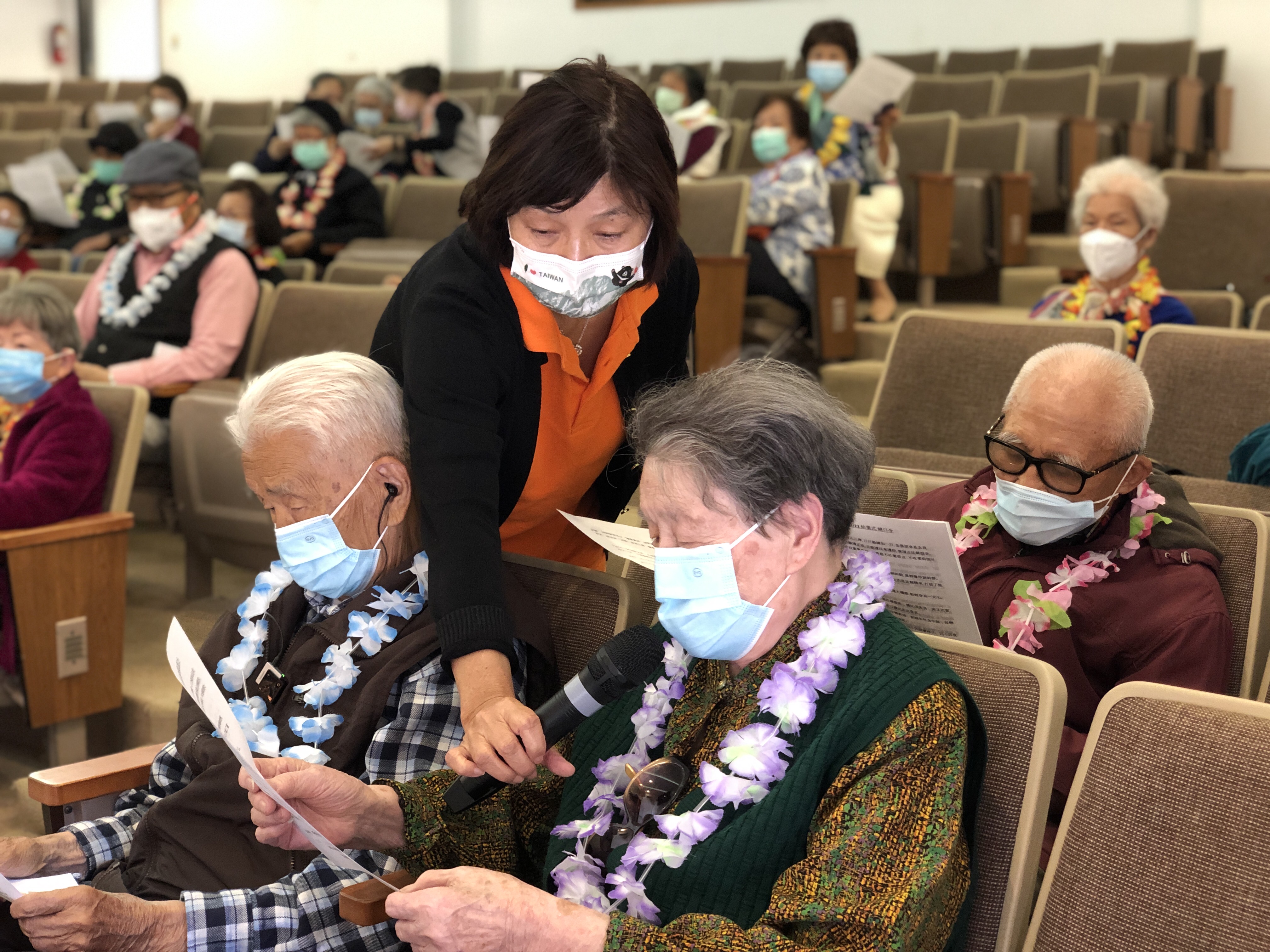 99歲的潘玉均、潘錦如賢伉儷偕同97歲大嫂王留芝,在女兒Yolanda的陪同下回到西來寺;92歲的游紫微由女兒陪伴前來;太極拳老師石文娟也應邀參加。結業典禮同時開放zoom meeting連線,使無法親臨現場的5位同學也能一起參與。