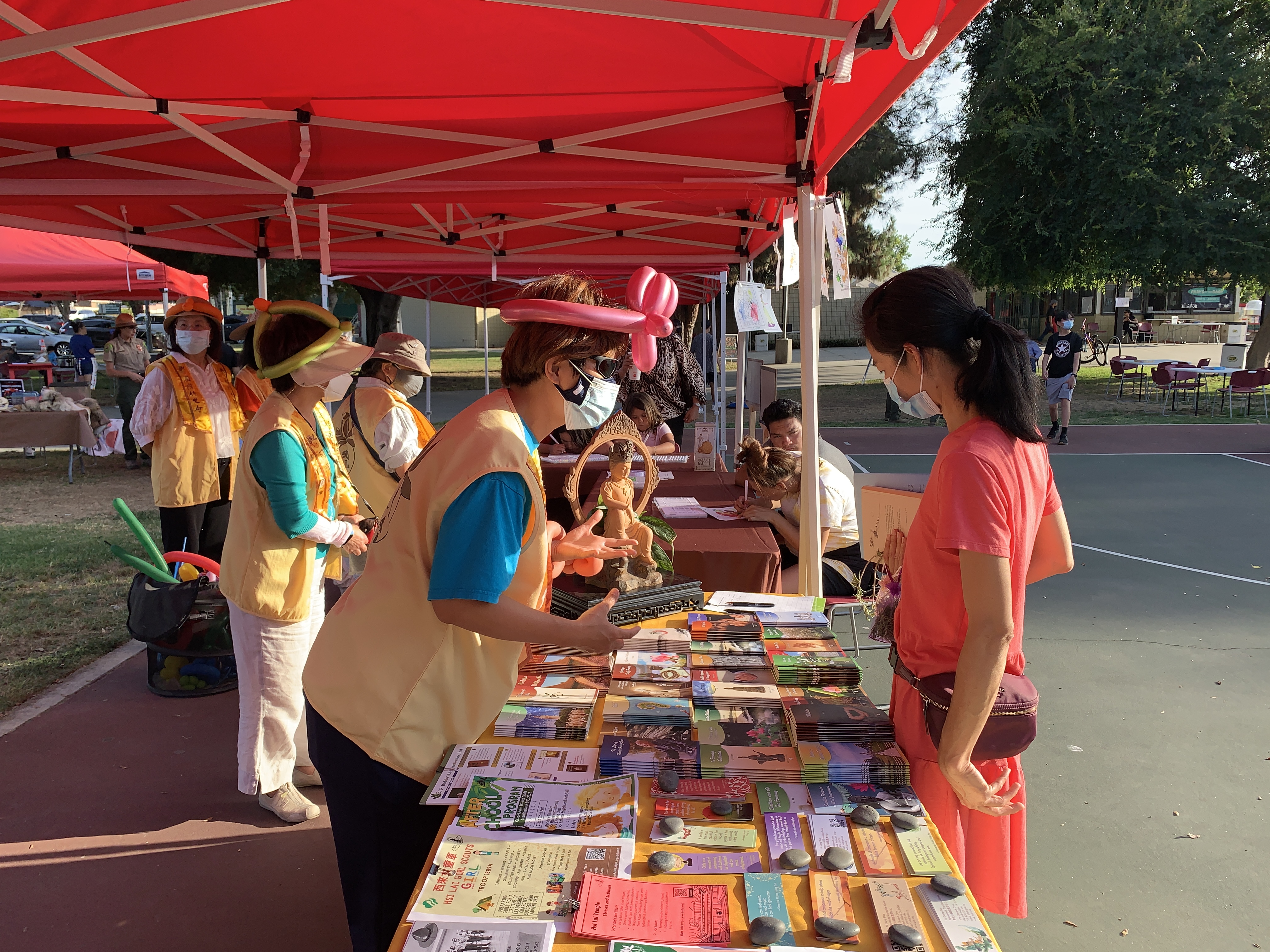 【人間社 心列 洛杉磯報導】佛光山西來寺7月21日應邀參加洛杉磯縣公園和娛樂部主辦的Parks After Dark-Steinmetz Park Resource Fair活動,於哈崗社區Steinmetz Park and Senior Center設置服務攤位,作為唯一佛教團體的西來寺,藉此走出去的機會,耕耘佛教本土化,以文化活動、教育課程的資訊與大眾分享交流,如男女童軍團、三好學園、講座課程等,逾百人由此因緣認識人間佛教。