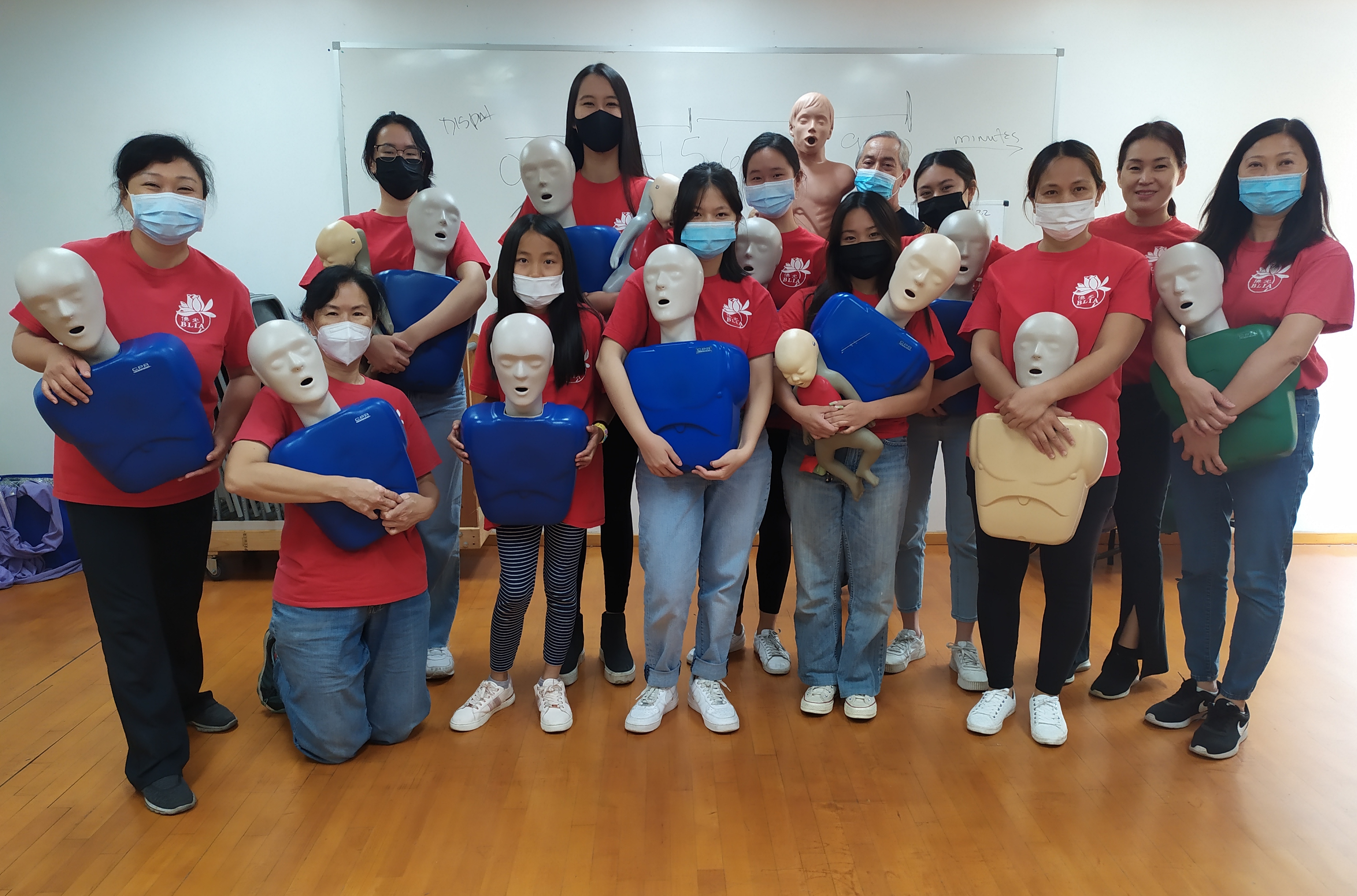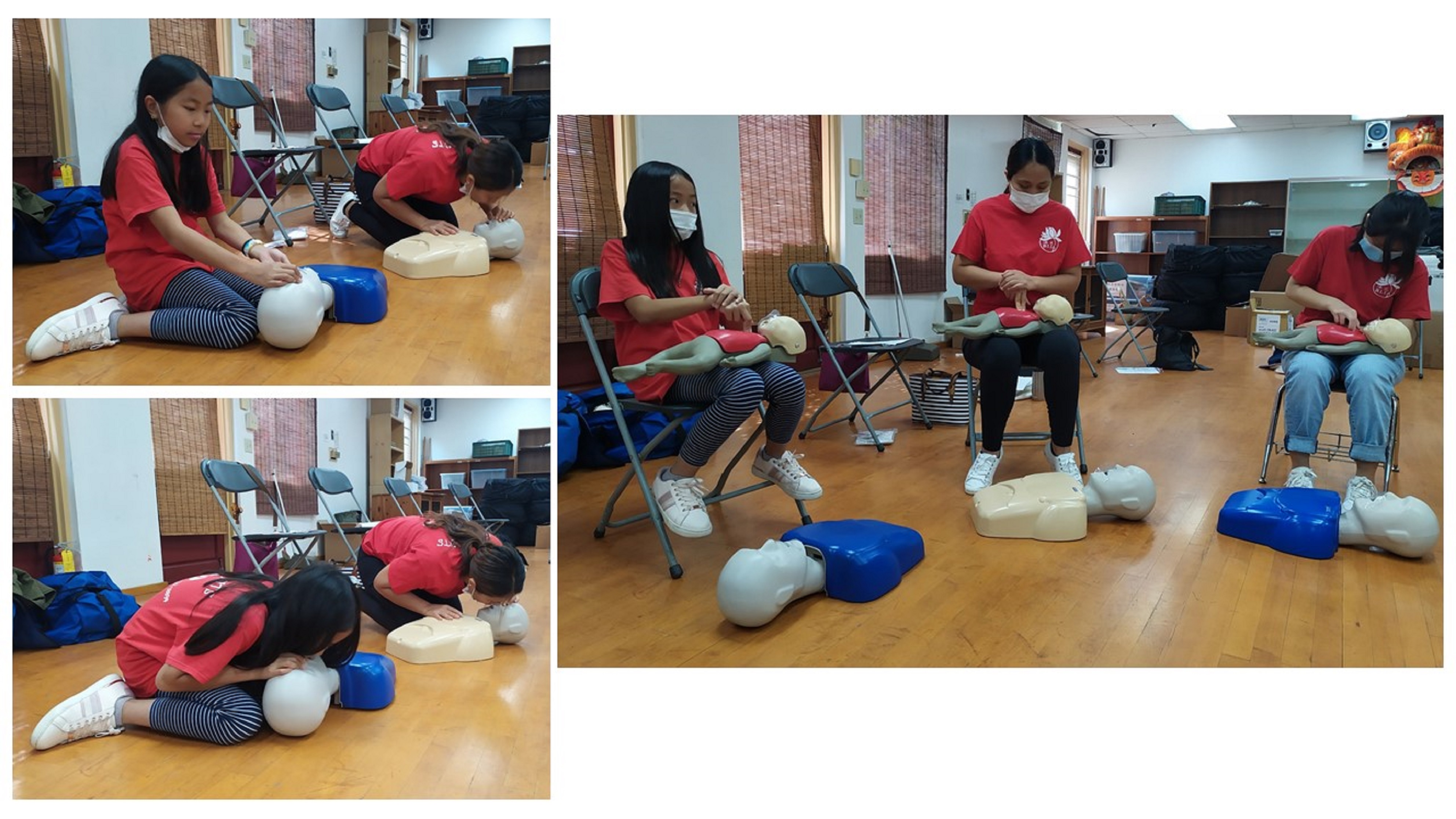 在4個小時的課程裡,學員於成人及嬰兒模型上演練心肺復甦術,也熟悉自動體外心臟去顫器的操作,並學習異物噎嗆、傷口包紮、燙傷、過敏、中暑、失溫等相關急救知識,最後12位皆獲得2年有效的急救執照,全體抱著急救模型歡喜合影,並齊聲高喊—「CPR with Troop 18894」!年紀最輕的11歲Sophia He表示過程很有趣,她樂在其中。