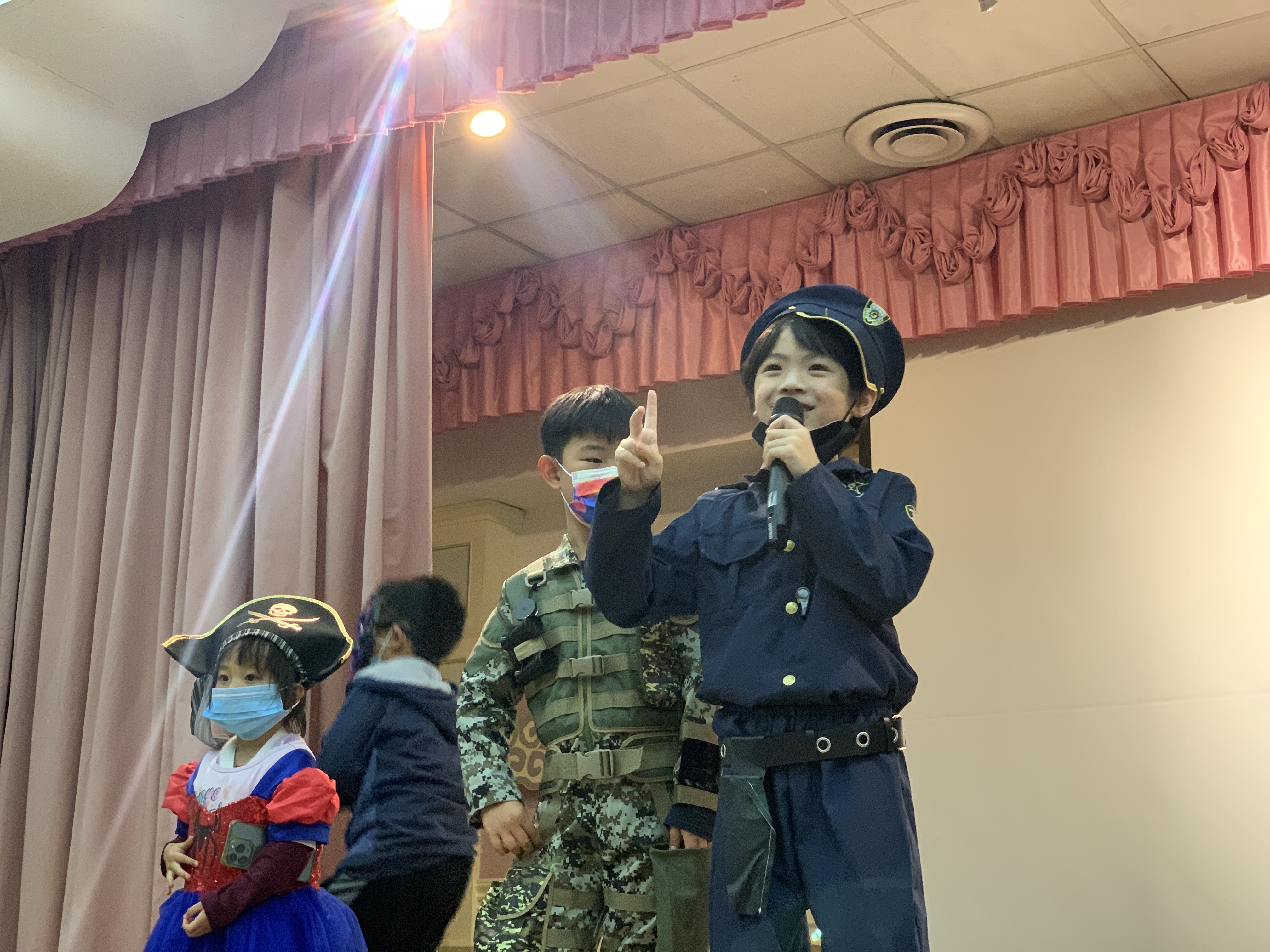 「萬聖服裝比賽」以「有趣」、「創意」、「可愛」、「搞鬼」為主題,各選出第一名,孩童上台為自己拉票,親友團以歡呼及掌聲打氣。2歲的Aaron Lam以跳跳虎Tigger裝扮拿下可愛組第一名,蹦蹦跳跳的與人擊掌。穿上服裝裝扮的家長也受邀上台同樂,羅賓漢爸爸與神力女超人媽媽帶著小紅帽女兒上台,爸媽童心未泯笑容羞澀又燦爛。