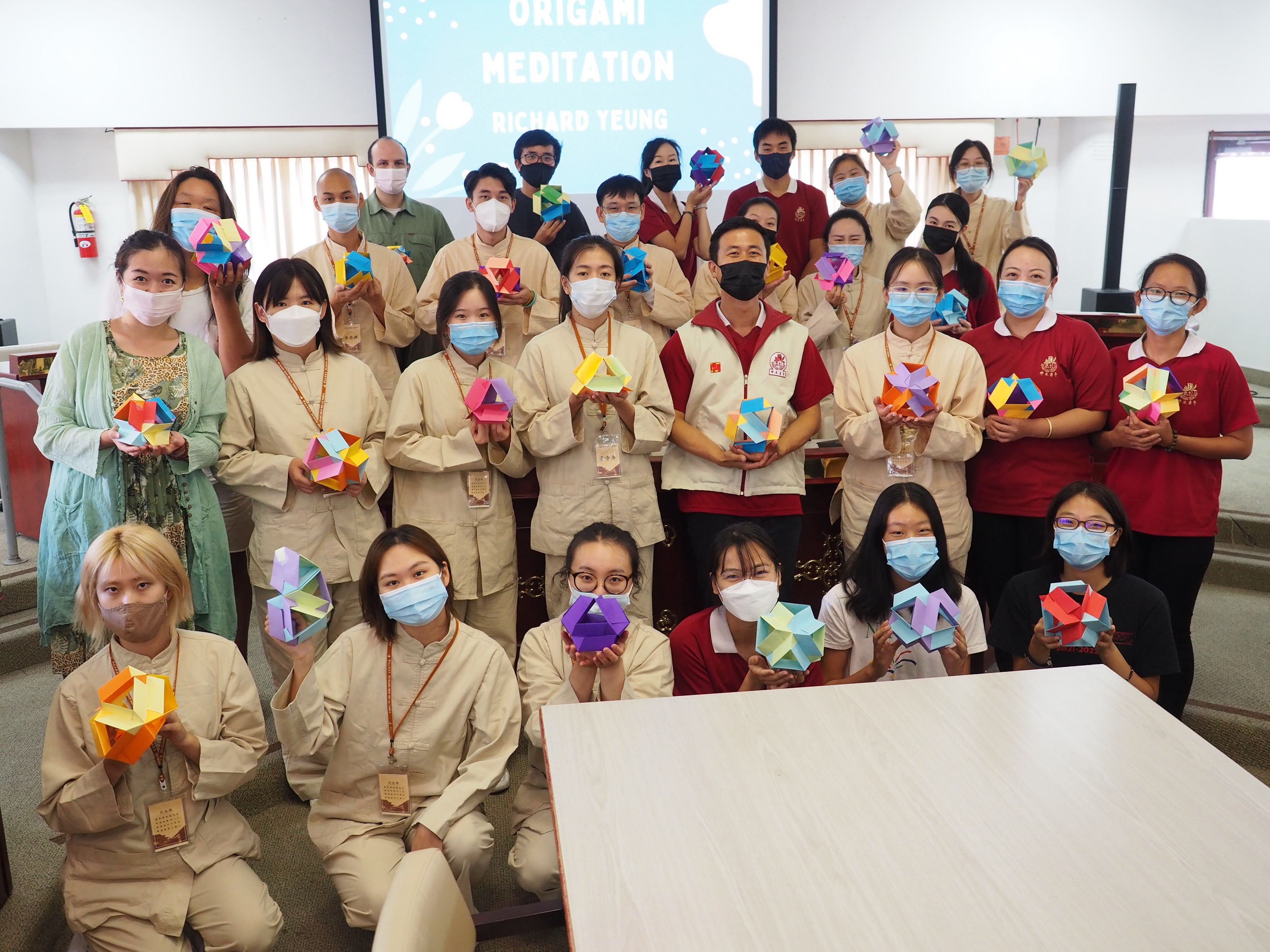 在西來寺的會堂,楊瑞紀督導剛結束青年一團折紙禪的教學活動後,緊接著到香雲堂受訪。人未到,爽朗的笑聲先到。他分享:「在孩童時期,跟著媽媽在西來寺當義工,但上初中後,覺得滑板比佛寺更有趣,漸漸就沒有再跟媽媽過來了。」停頓了幾秒,「小孩子都會這樣覺得吧?」楊瑞紀笑著反問採訪人,似乎期待獲得認同。實際上,這也是許多佛光家庭下一代的寫照。一直到20歲那年,孩童時期在西來寺認識的朋友邀請楊瑞紀到西來寺擔任兒童育樂營的義工,才再次接續了與人間佛教的緣分,並在2010年加入佛光青年團,轉眼在青年一團已經12個年頭。