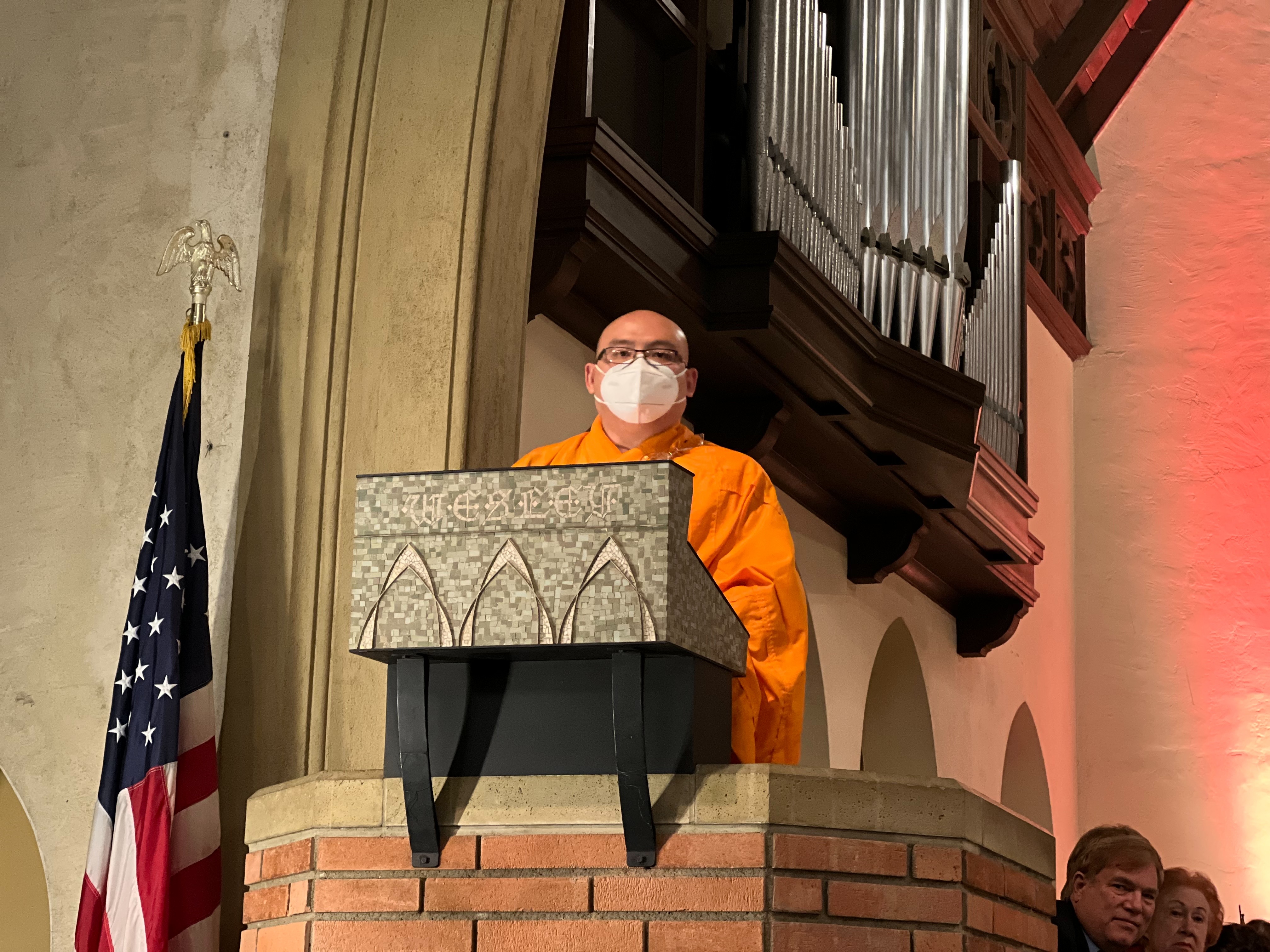 西來寺慧澤法師提到在疫情初期,面對封城和大量的感染人數,在人們似乎看不到未來的時候,是第一線的人員給予我們保護和安定的力量。法師帶領佛光人一起上台誦念《心經》,及星雲大師〈為醫護人員祈願文〉來表達感謝,並祈願大眾平安吉祥度過疫情。非營利慈善機構Foothill Unity Center執行長泰希拉泰勒(Tashera Taylor)希望大家將今晚的分享鉻記於心,將希望、慈悲和愛散佈到各角落。