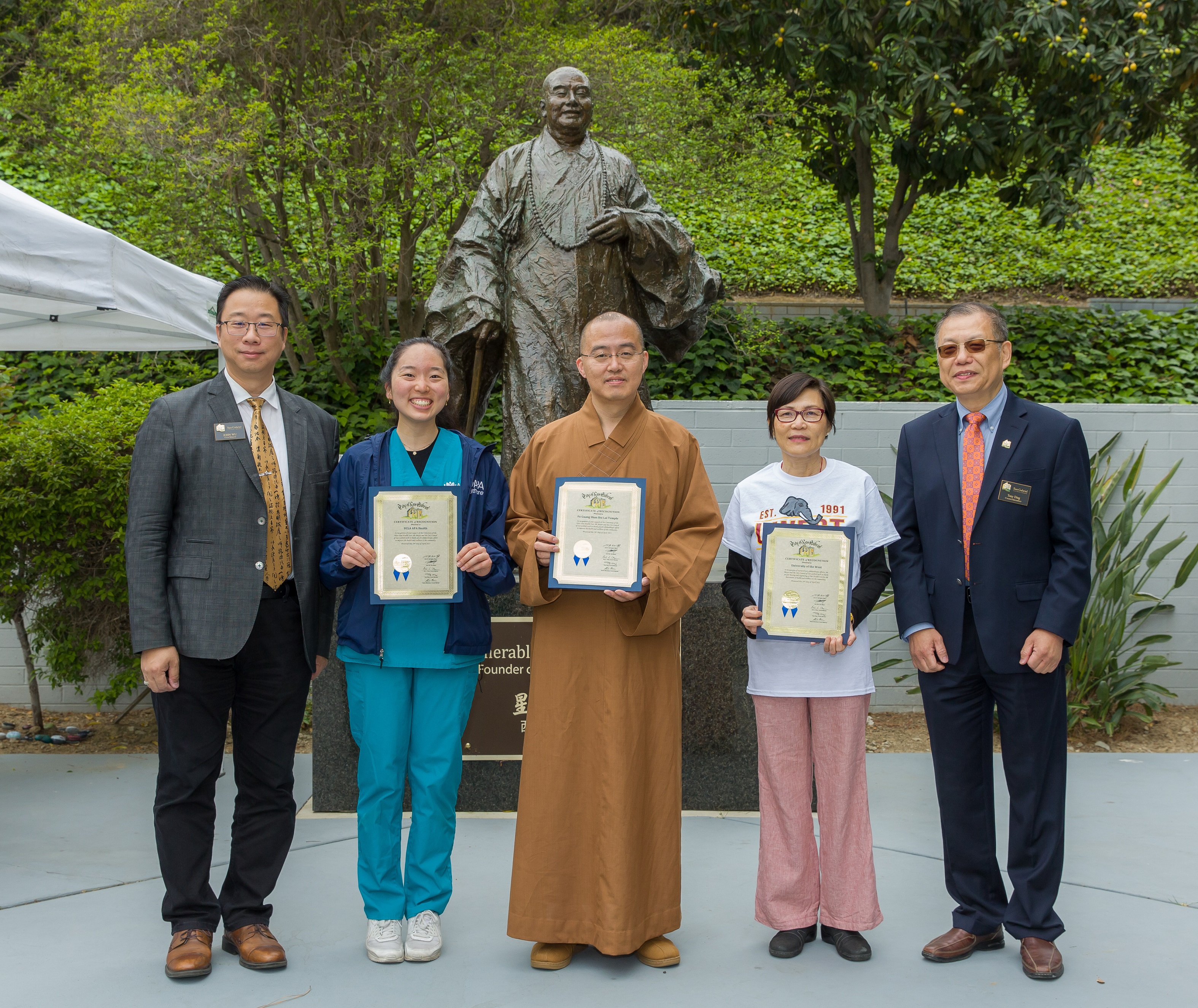 西來大學校長謝明華、西來寺住持慧東法師、聖蓋博市長丁言愉(Tony Ding)及副市長吳程遠(John Wu)皆出席此次活動,在致詞時向參與此健康檢查活動的各單位表達謝意,並至各區一一頒發感謝狀及結緣品。