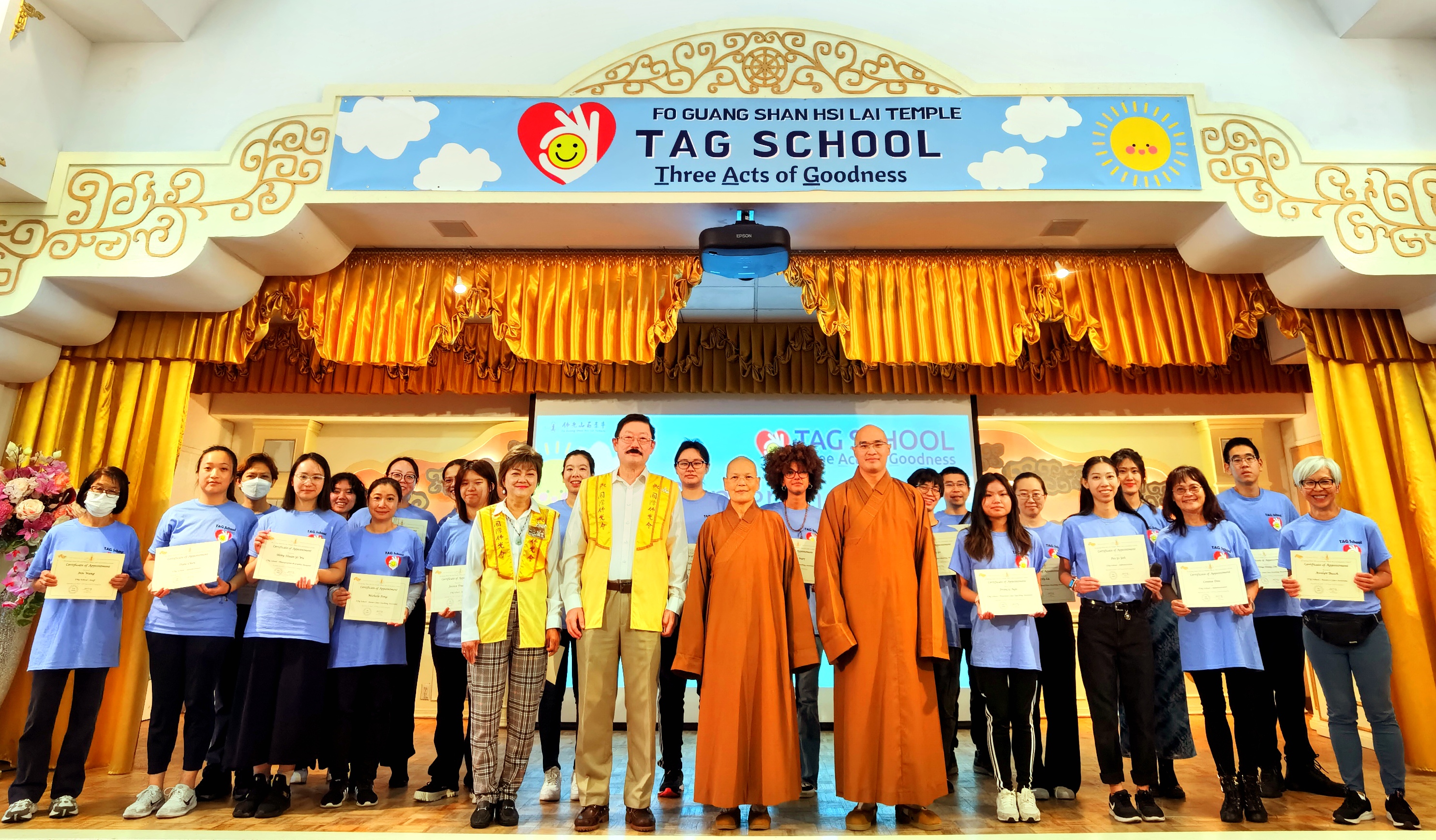 【人間社 王隨風 洛杉磯報導】西來三好學園9月24日舉行開學典禮,235位師生齊聚西來寺法堂。本學期的三好學園不僅有本土家庭的踴躍報名,更有許多當地華人的第三代、第四代持續參與。監院依宣法師、國際佛光會洛杉磯協會會長吳帥倫、副會長葉玉景為無私奉獻的義工老師頒發聘書。