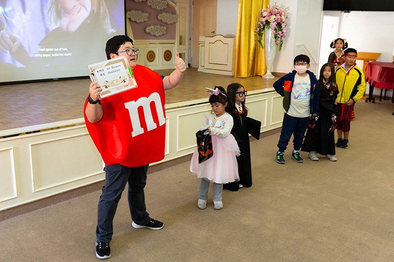 「Oh My Buddha!阿彌陀佛!」討糖前老師何祥鈺和小朋友們一問一答,並講解討糖時到寺院裡各個站點前,需結「天上天下唯我獨尊」、「禪定」、「無畏」、「合十」、「蓮花」、「三好」等不同手印。何祥鈺表示,自己也是從「小義工」開始,轉眼間已任教及擔任行政工作13年。透過服務學習「三好四給」精神,在小朋友最喜歡的節日裡,利用東方場地體現西方文化意義非凡。老師們除了準備糖果外,也精心準備健康零食以及文具。