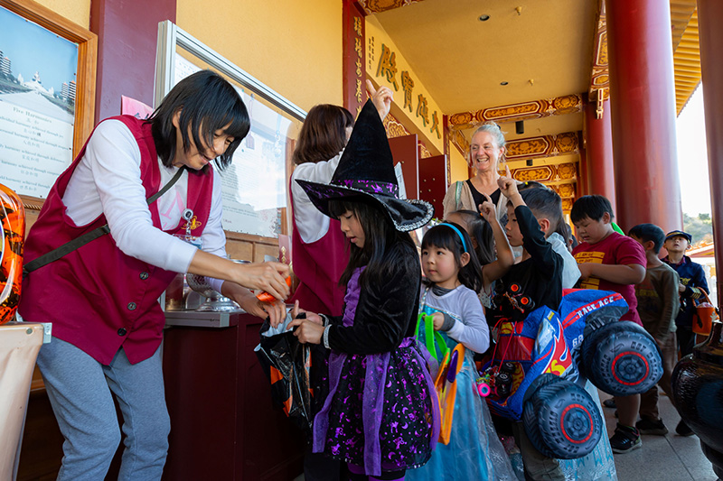 佛光西來學校執行長滿兆法師表示,歡迎小朋友們回到西來寺,希望大家會喜歡今年設計的「佛教手印討糖站點」,發揮「做好事、說好話、存好心」的三好精神並將糖果帶回家分享給其他人。