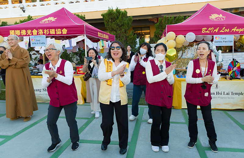 成佛大道園遊會,推出各國風味蔬食小吃,還有教育攤位推廣星雲大師英文書籍、人間繪圖(Mindful Coloring)、三好法語尋寶(T-A-G Word Game)、法輪常轉(Spin the Dharma Wheel)等寓教於樂的內容吸引人潮。
