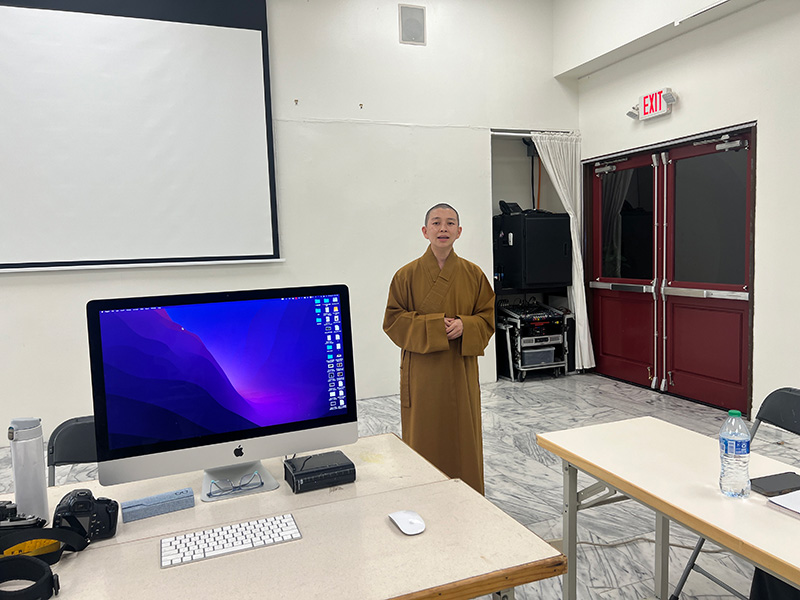 西來寺文宣組知三法師在結業開示,感謝指導老師張志誠認真教學,並檢視學員們豐碩的攝影成果,勉勵大家繼續精進攝影技巧,希望在日後的活動報導看到學員們的學習成果。