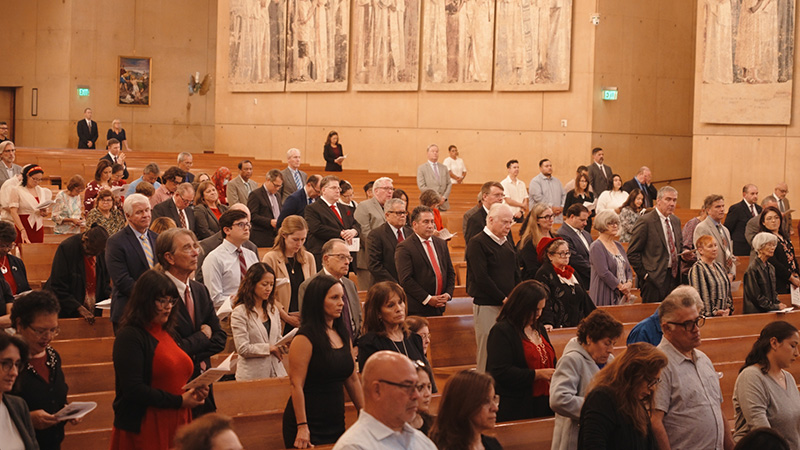 典禮隨後進行祈福彌撒,並舉行聖餐儀式,眾信徒井然有序地排隊到神父面前領受聖餐。典禮結束前,總主教若瑟·戈梅斯親自帶領信眾步出教堂,並在貴賓席區向出席儀式的各宗教代表逐一握手問候,場面溫馨,讓人倍感親切。