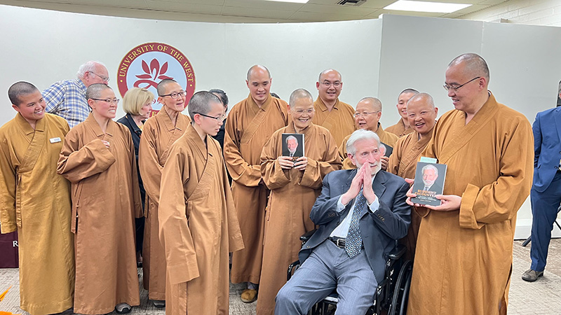 【人間社 鄭劼彥、潘青霞 洛杉磯報導】美國西來大學於2024年10月28日舉辦了一場新書《邂逅佛教》發表會暨專題演講,禮請佛學泰斗路易斯•蘭卡斯特(Lewis R. Lancaster)教授出席演講。此書由佛光文化出版社出版,旨在闡述佛教教義於現代生活中的應用,並向人間佛教的奠基者、佛光山創辦人星雲大師的思想致敬。現場及線上近150人出席聆聽。