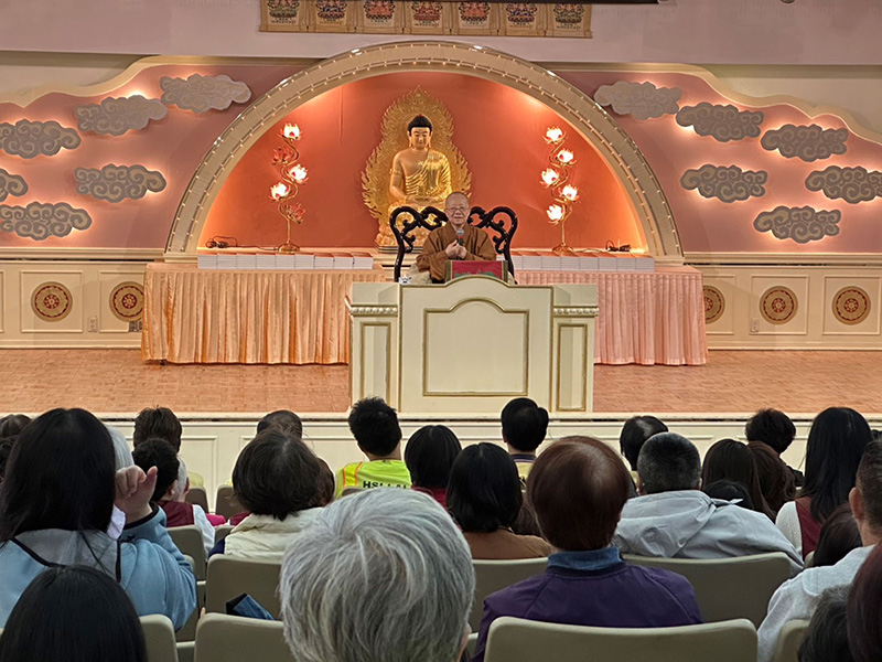 【人間社 潘青霞 洛杉磯報導】 佛光山西來寺人間學院於11月9日,禮請佛光山文化院院長依空法師於「宗門思想」課程授課,並訂為義工培訓課程,依空法師以佛光山開山祖師星雲大師著作《我不是「呷」教的和尚》為題,向近250位聽眾分享他半世紀來親炙大師的身教與言教,講座提供同步英文翻譯。