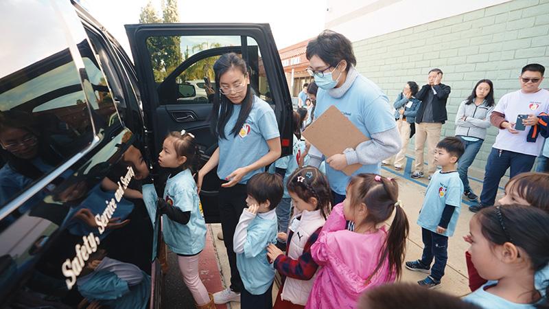 警官 Zachary Salazar、Rene Gonzalez、Brian O'Toole 和 Olivia Limon 一同前來,其中,Limon 警官身著加州公路巡警吉祥物花栗鼠 「Chipper」 的造型服裝,與學生們進行互動。警官 Salazar 以問答方式向學生講解行路安全,說明停、看、聽的重要性,提醒學生不可分心,騎腳踏車、玩滑板時必須戴安全帽。警官 Salazar 並強調毒品的危害,指出毒品會損害大腦,影響判斷力,進而危及自己及他人安全。當警官 Salazar 問到「對毒品要說什麼」時,學生們齊聲回答:「No!」